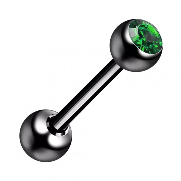 Piercing Langue Acier 316L Anodisé Noir avec Strass Vert Foncé