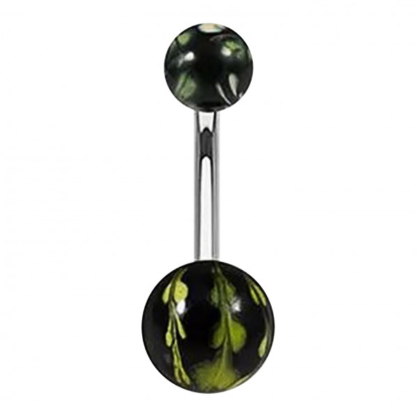 Piercing Nombril Original Peint Main Feuillage Vert Clair / Noir