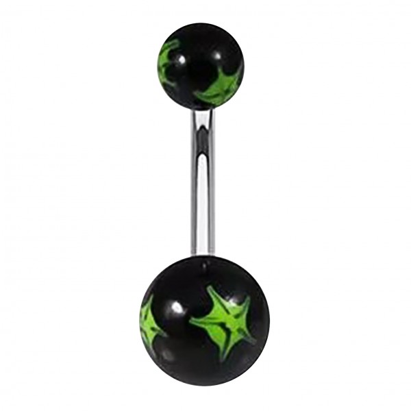 Piercing Nombril Original Peint Main Etoiles Vert / Noir