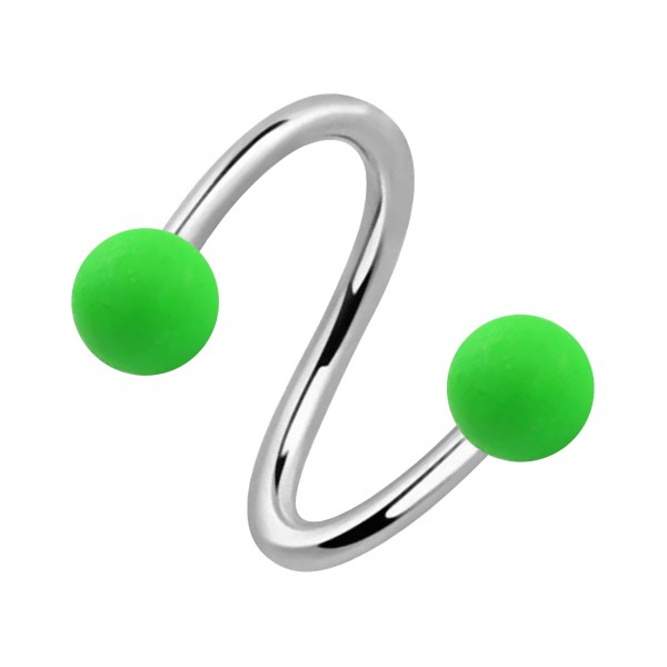 Piercing Hélix Spirale Acrylique Néon Deux Boules Vertes
